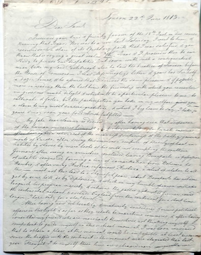 In 1813 a young man writes to a friend of his life in London and explains his decision to become a junior officer in the King’s German Legion, to fight in the Napoleonic Wars.
